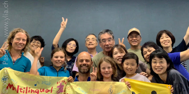 Quelques heures plus tard, nous avons une conférence avec l’association HIPPO (https://www.lexhippo.gr.jp/), qui promeut l’apprentissage naturel de la langue. Heureusement, les quelques jeux ont mis Fibie dans une énergie un peu plus légère. Puis nous nous retrouvons face à un gigantesque barbecue dans le jardin somptueux de la maison traditionnelle familiale de Ryuma Kojima San à Makurazaki. Nous plongeons aussi subrepticement dans les énergies de la Seconde Guerre mondiale. Non loin d’ici, se trouve la base Chiran, là où les jeunes japonais se sont transformés en Kamikaze, les vents divins, pour sauver la patrie. Il y a là-bas les dernières lettres, photographies et histoires de ces jeunes. Et pas la peine d’aller si loin. Ryuma San nous explique qu’une bombe à exploser à l’endroit même où nous mangeons, et nous montre ensuite les marques des impacts de balles sur les charpentes de la maison. De retour à notre barbecue, nous retrouvons la famille Sato, Sunao, le mari s’occupe de surveiller et prédire les éventuelles explosions du volcan Sakurajima, en analysant notamment les tremblements de terre. Sa femme Chiaki, elle s’occupe des prédictions météorologiques. Et Hitane leur petit garçon de 2 ans s’amuse à cœur joie avec les filles.